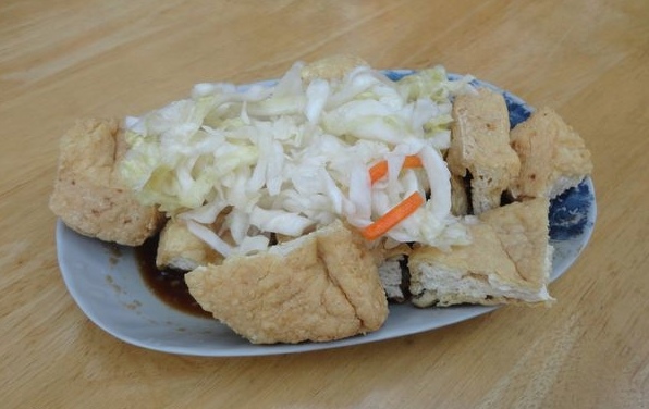 原本位在旗山媽祖廟後面的三哥臭豆腐,臭豆腐炸的香酥可口~搭配著高麗菜一起吃,真是銷魂阿