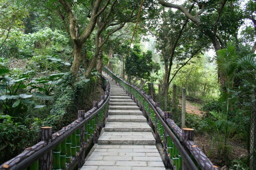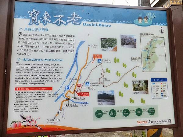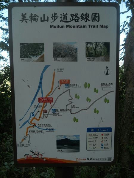 美輪山步道的入口在六龜不老溫泉的街上的慈祐宮旁,入口處有一木製的路線圖,標明步道沿途的休憩處或景點。